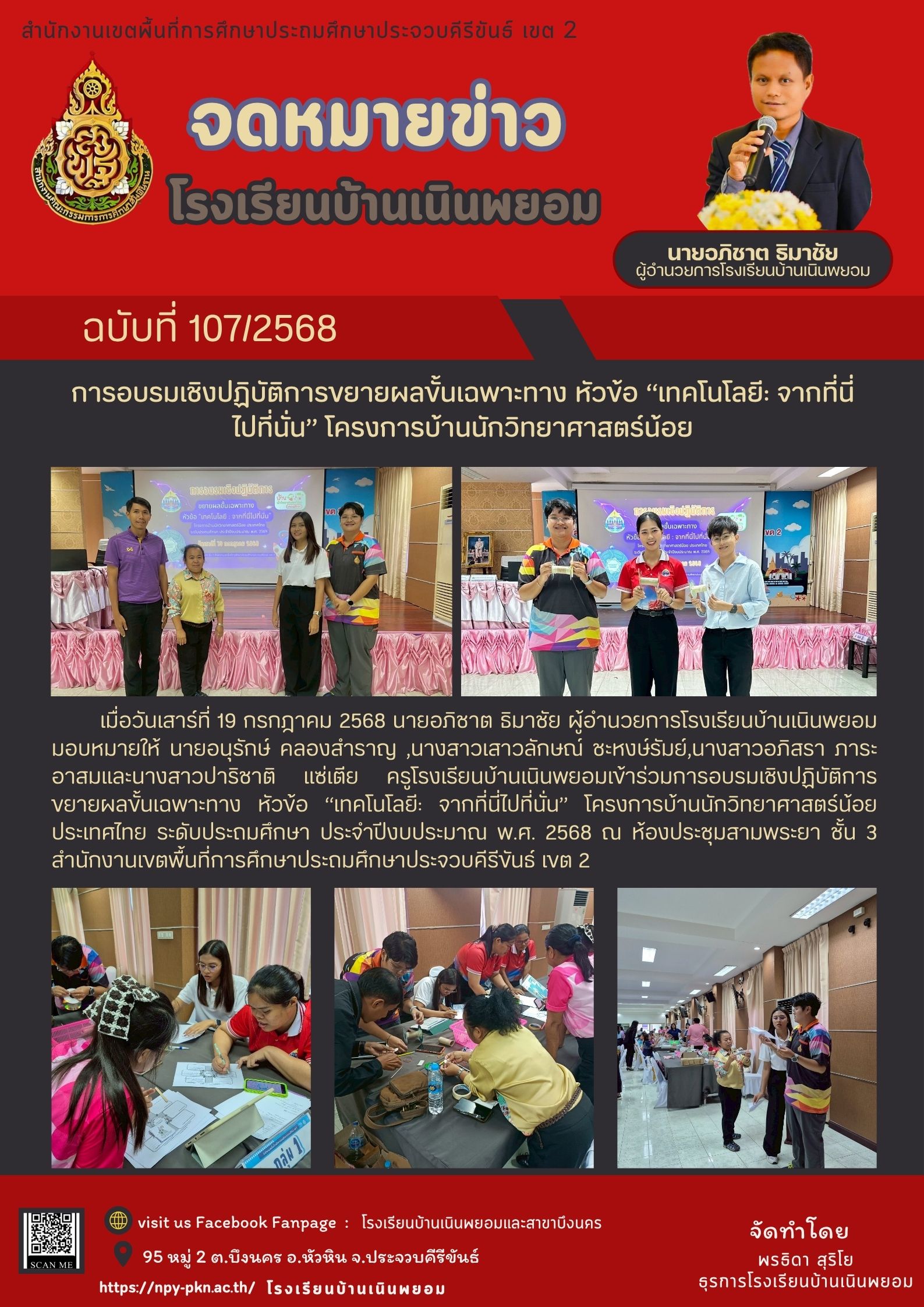 การอบรมเชิงปฏิบัติการขยายผลขั้นเฉพาะทาง หัวข้อ "เทคโนโลยี: จากที่นี่ไปที่นั่น"โครงการบ้านนักวิทยาศาสตร์น้อย