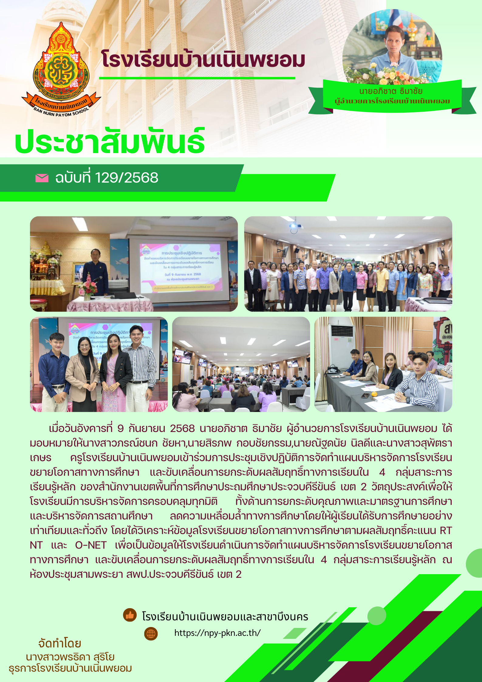 การประชุมเชิงปฏิบัติการจัดทำแผนบริหารจัดการโรงเรียนขยายโอกาสทางการศึกษา และขับเคลื่อนการยกระดับผลสัมฤทธิ์ทางการเรียนใน 4 กลุ่มสาระการเรียนรู้หลัก