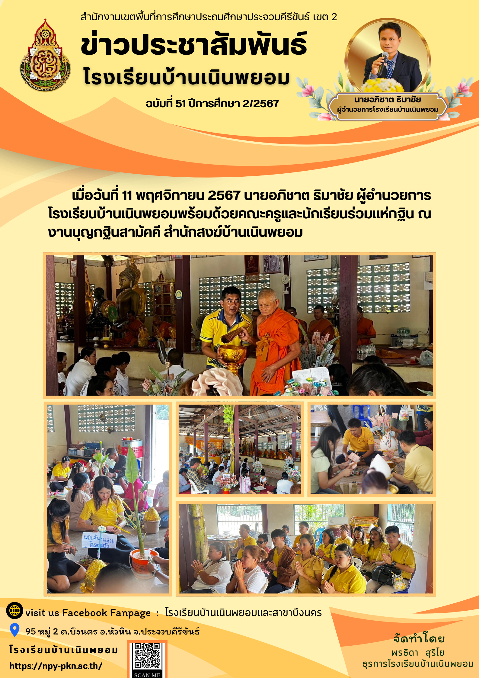 ผู้อำนวยการพร้อมคณะครูและนักเรียนร่วมแห่กฐิน ณ งานบุญกฐินสามัคคี สำนักสงฆ์บ้านเนินพยอม