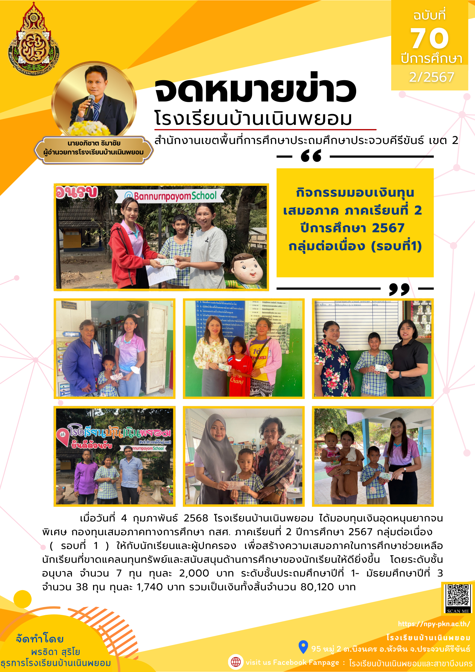 กิจกรรมมอบเงินทุน เสมอภาค ภาคเรียนที่ 2 ปีการศึกษา 2567 กลุ่มต่อเนื่อง (รอบที่1)